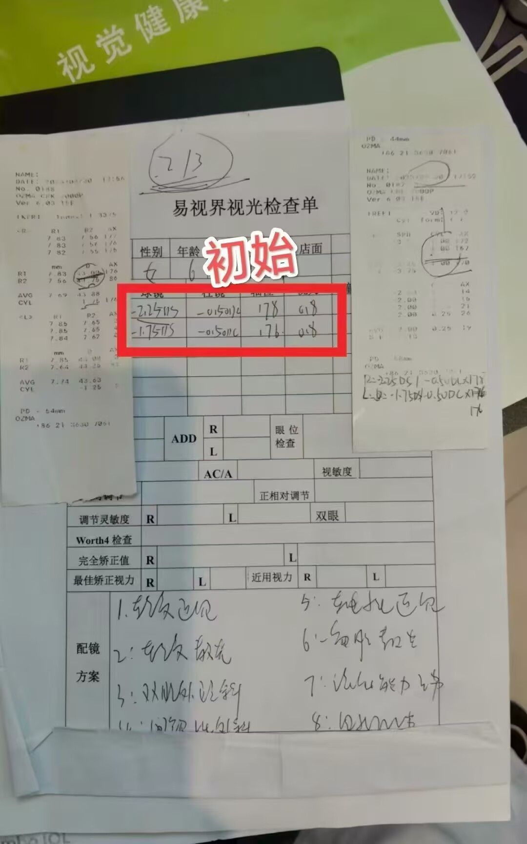 婉婉在易视界训练两年,初到店时右眼225度、左眼175度,戴镜视力0.8。