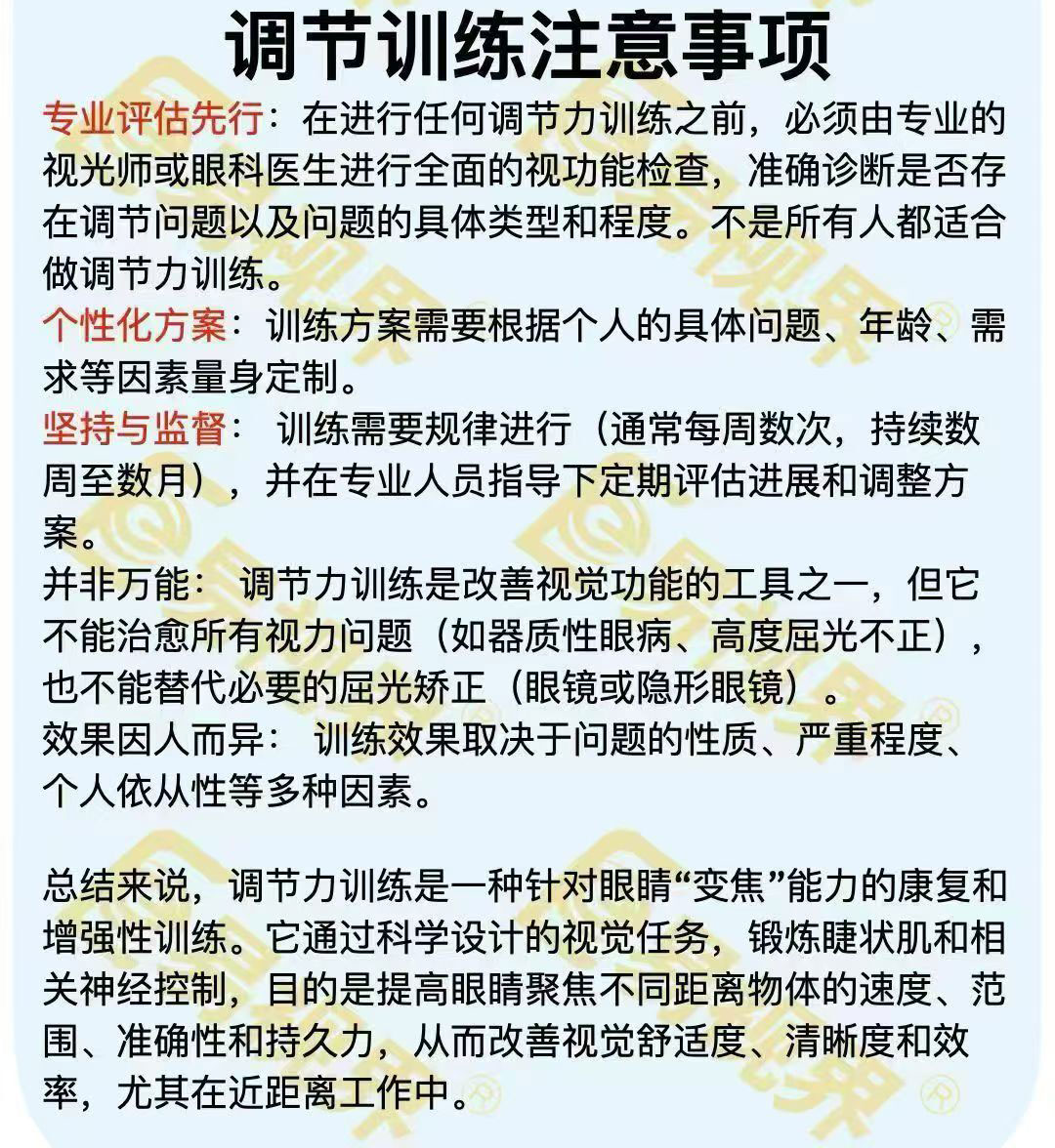 专业评估先行:在进行任何调节力训练之前,必须由专业的视光师或眼科医生进行全面的视功能检查,准确诊断是否存在调节问题以及问题的具体类型和程度。不是所有人都适合做调节力训练。个性化方案:训练方案需要根据个人的具体问题、年龄、需求等因素量身定制。坚持与监督:训练需要规律进行(通常每周数次,持续数周至数月)...